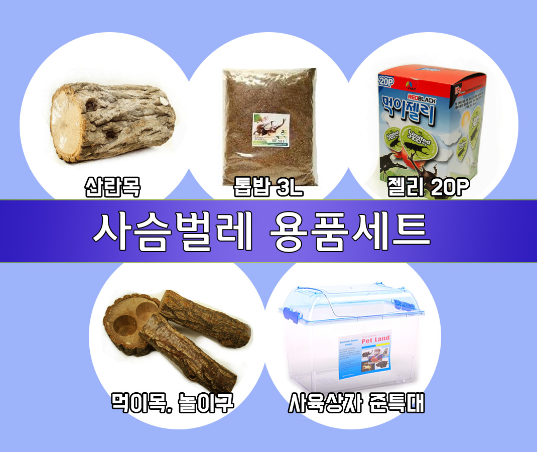 사슴벌레 기르기 용품이 모두 들어 있습니다.