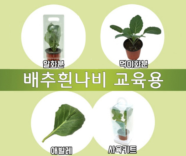참고사항: 포함되는 생물은 흰나비알, 배추흰나비 애벌레 , 여분의 먹이식물 다 자란 애벌레는 도착 후 약 일주일 정도면 번데기가 됩니다. 간혹 운송 중 번데기가 된 경우도 있으나 또 다른 어린 애벌레가 들어 있어서 번데기가 되는 과정의 관찰이 가능합니다.