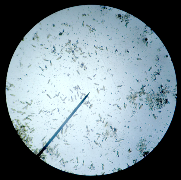 관찰 재료의 사용방법 스포이드로 아래부분의 슬러지를 수집 조사하거나 호기성 곰팡이를 좋아하므로 윗 부분의 곰팡이를 걷어서 수집하여 홀슬라이드에 한 방울 떨어뜨린 후 저배율로 관찰한다,