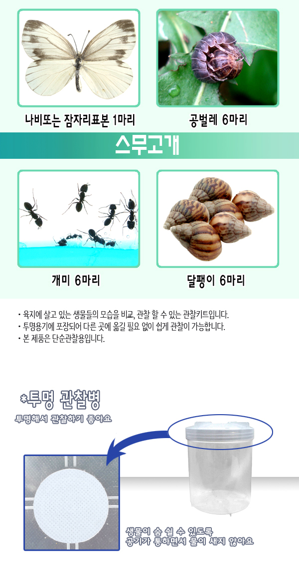 "주변의동물1육지달팽이,나비,공벌레,개미" 상품의