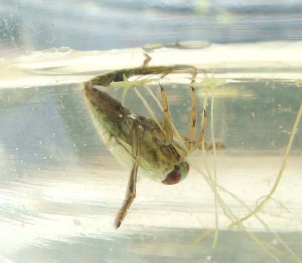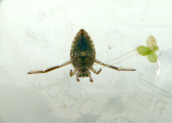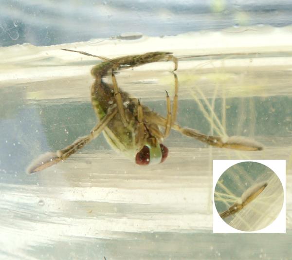 물위에 거꾸로 누워 긴 앞발을 이용하여 노를 저어 이동하는 곤충