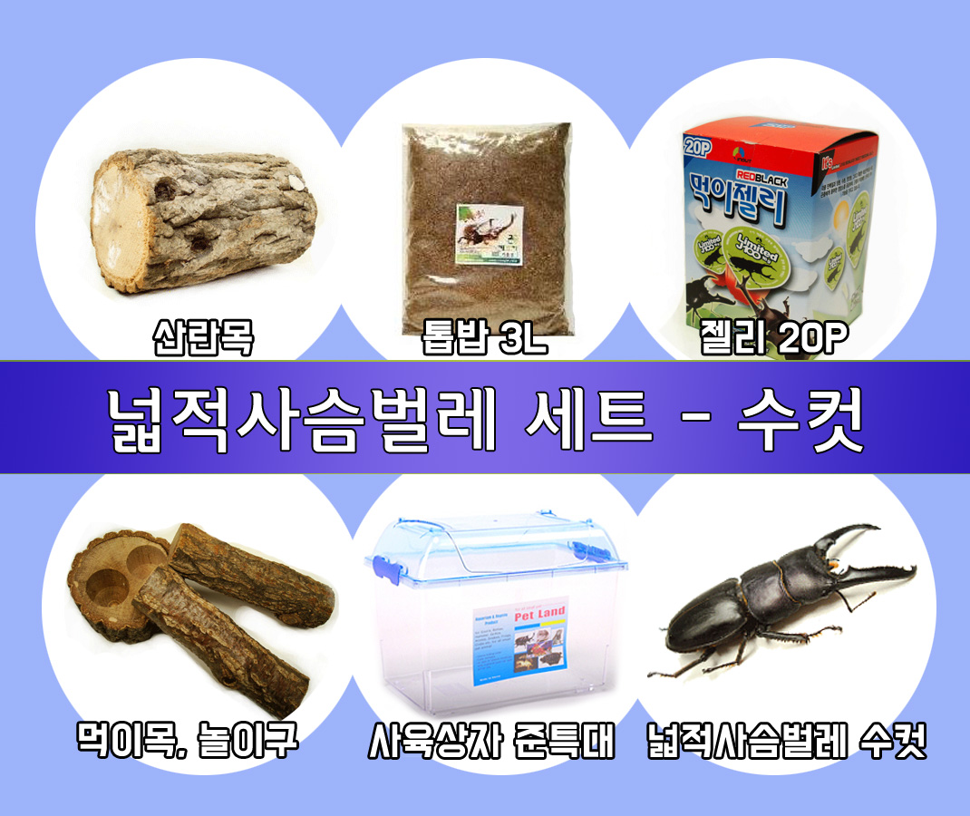 넓적사슴벌레 성충 수컷과 세트가 포함되어 있습니다.