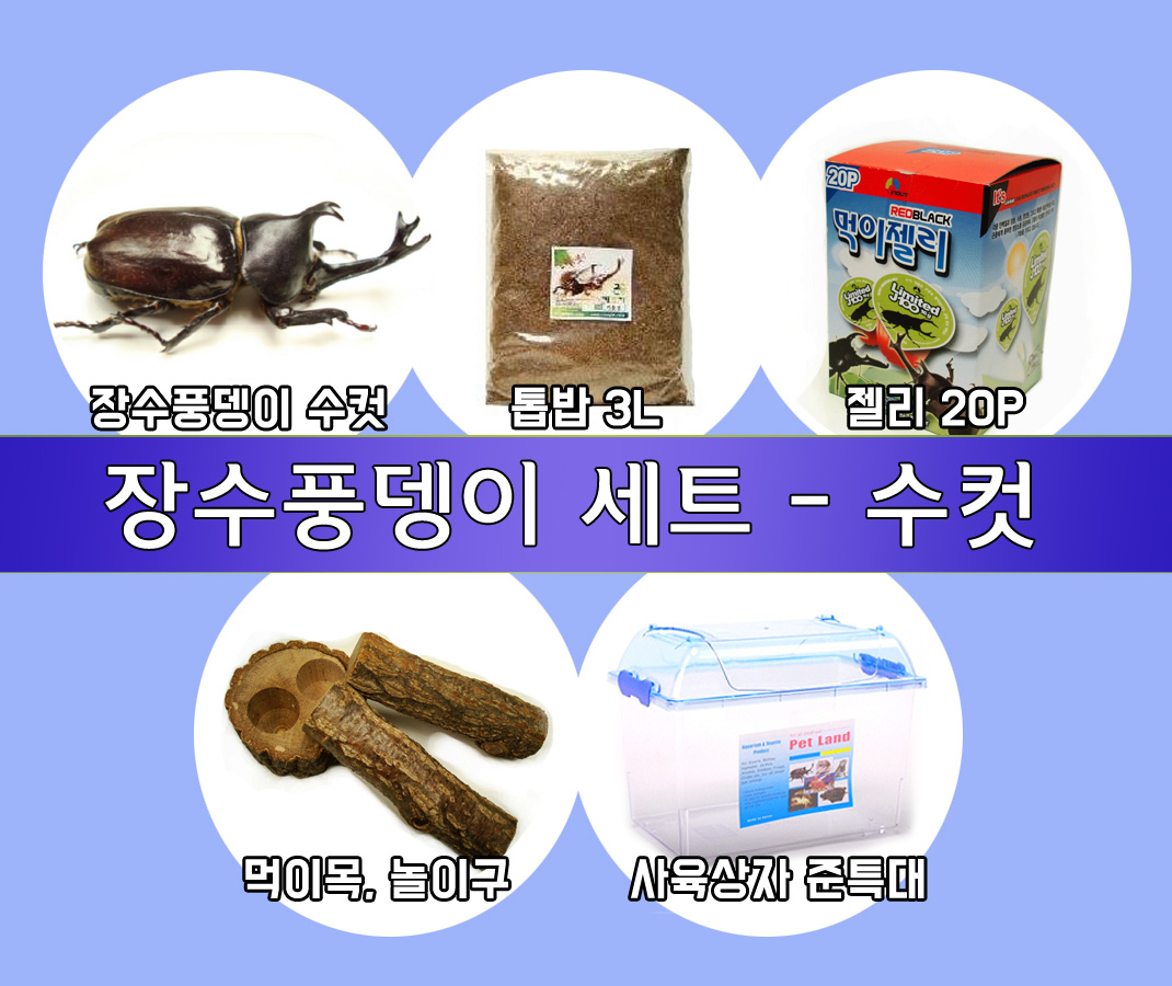 장수풍뎅이특대풀세트-- - 대형의 장수성충 한 쌍 포함세트.
