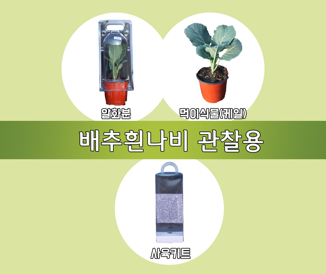 배추흰나비알화분 (관찰용) 관찰이 가능한 배추흰나비알 최소 7알 이상, 사육키트1, 여분의 먹이식물